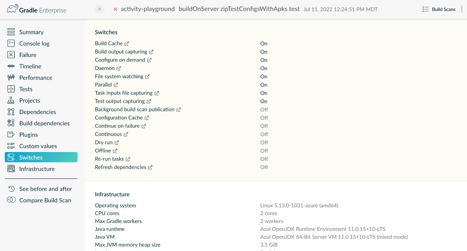If your team is using GitHub Actions and struggling to identify the root cause of build failures by combing through CI logs, Aurimas’ story will be particularly relatable. He describes how using the Build Scan™ service from Develocity gave the AndroidX team critical insights to quickly zero in on the causes of failures as well as the analytics needed to spot problematic trends in their build process. A Build Scan is like an X-ray for your build. It gives developers deep data on each task or goal, so they can quickly find the root cause of failures. Armed with a Build Scan, developers can fix their problems without re-running broken builds to reproduce issues or requiring the help of the build team.