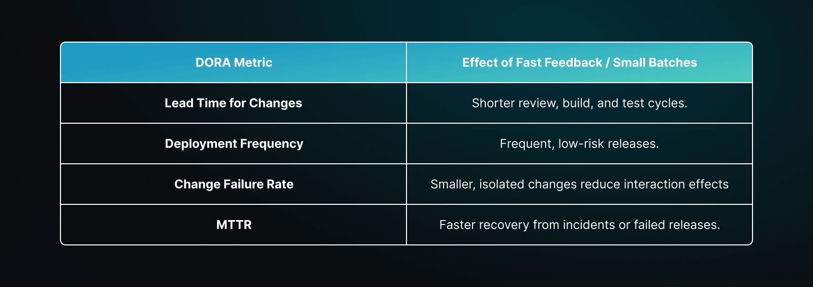 When feedback is fast, teams integrate continuously, deploy confidently, and innovate freely. When it’s slow, everything drifts: batch sizes grow, risk increases, and productivity stalls.