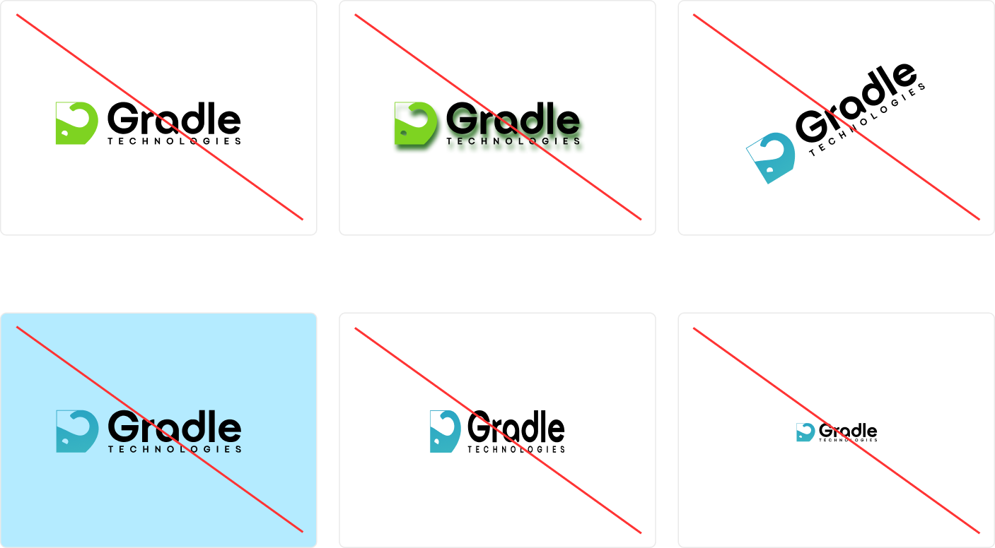It is important that the appearance of Gradle's logos and icons remain consistent and uncompromised. Without exception, they should not be modified or added to, or sized in a manner that alters their proportions. Their orientation, color and composition should not be altered, and they should be used in a manner consistent with the guidelines outlined on this page.