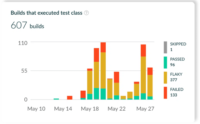 Find unreliable builds and tests, like flaky tests, learn how many people and environments are affected, share information about them, and understand the root cause efficiently.